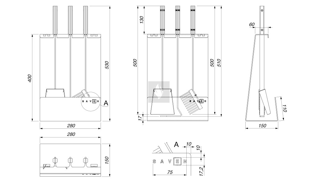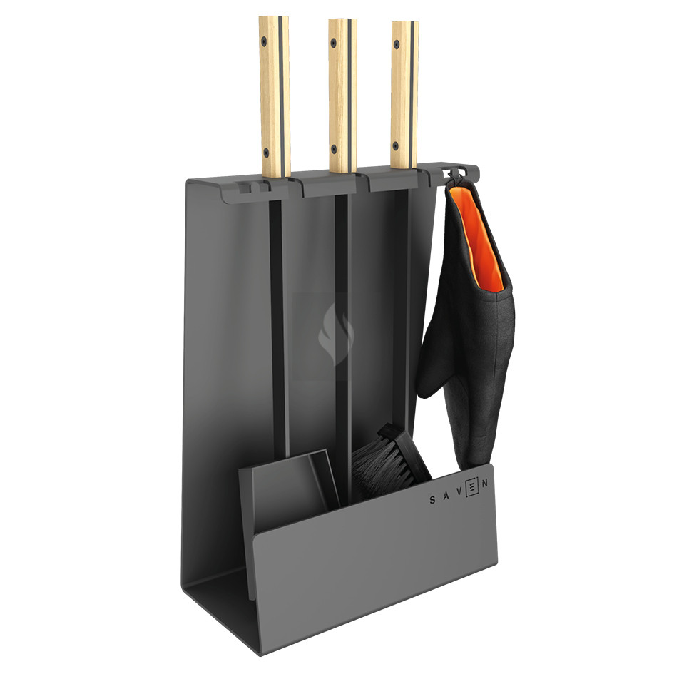 Minden készlet három alapvető eszközt tartalmaz: lapátot, kefét és piszkavasat, amelyek elengedhetetlenek a kandalló tisztán tartásához és biztonságos használatához. A stabil állvány és a praktikus akasztók gondoskodnak arról, hogy a szerszámok mindig rendezett módon, könnyen elérhető helyen legyenek. A SAVEN termékek Ukrajnában készülnek, magas minőségű alapanyagokból, precíz gyártási technológiával, így hosszú távon is megbízható társai lesznek a mindennapi tűzrakásnak.