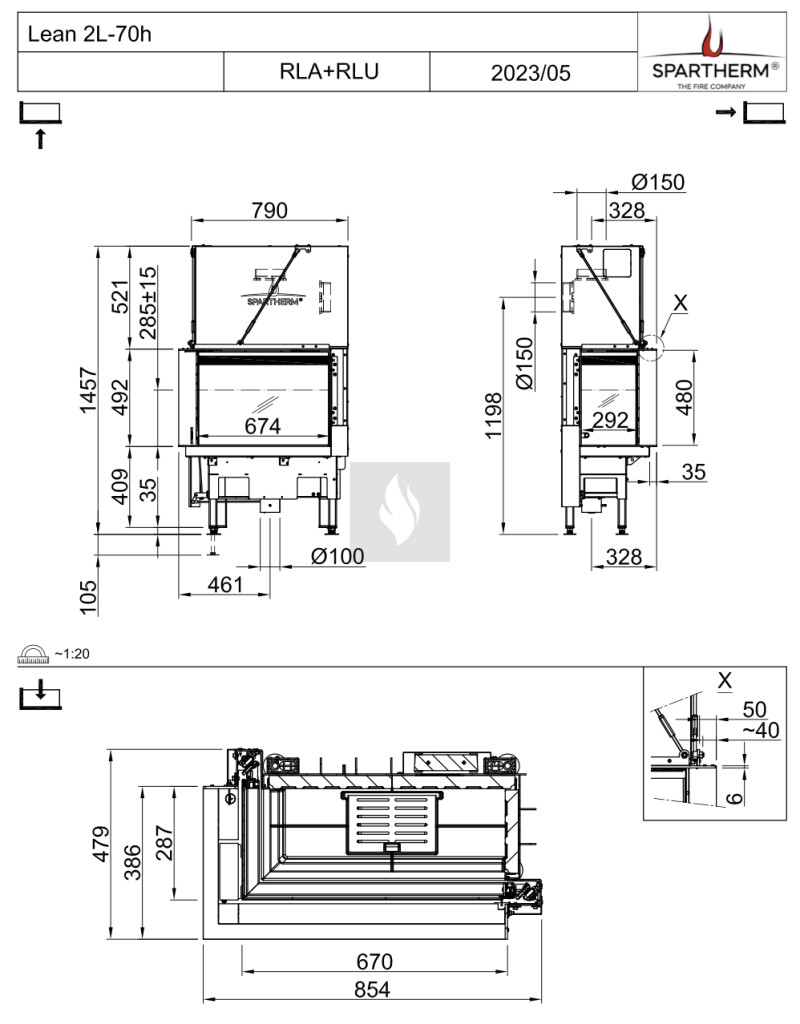 Spartherm Lean 2L-70H Légfűtéses kandallóbetét
