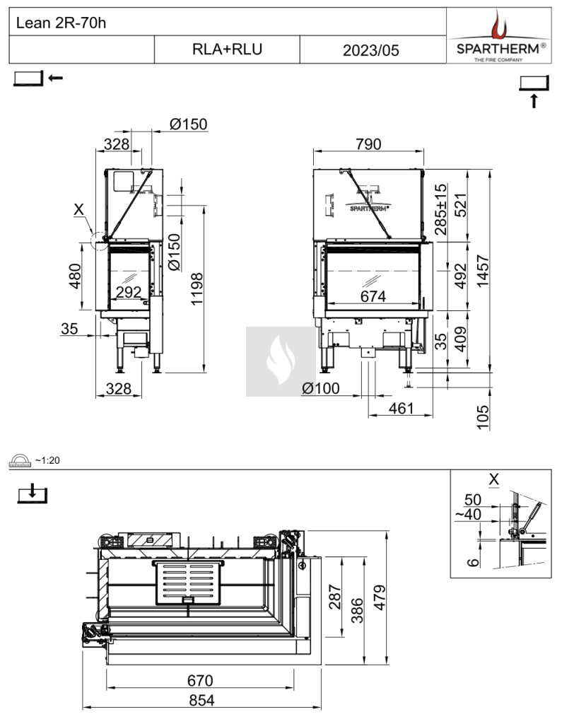 Spartherm Lean 2R-70H RLU Légfűtéses kandallóbetét