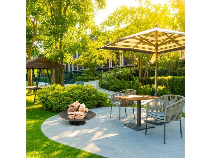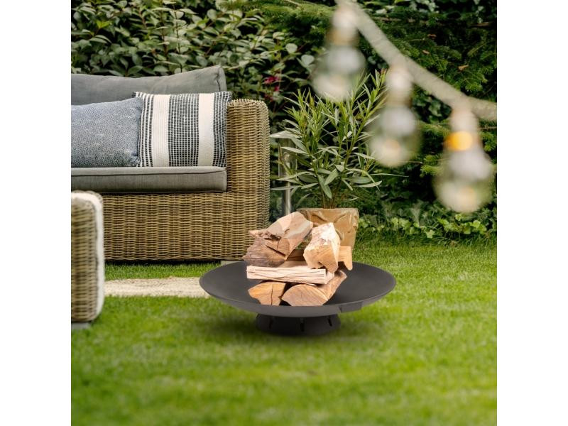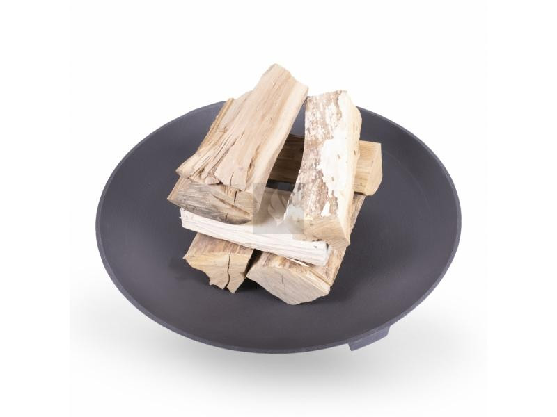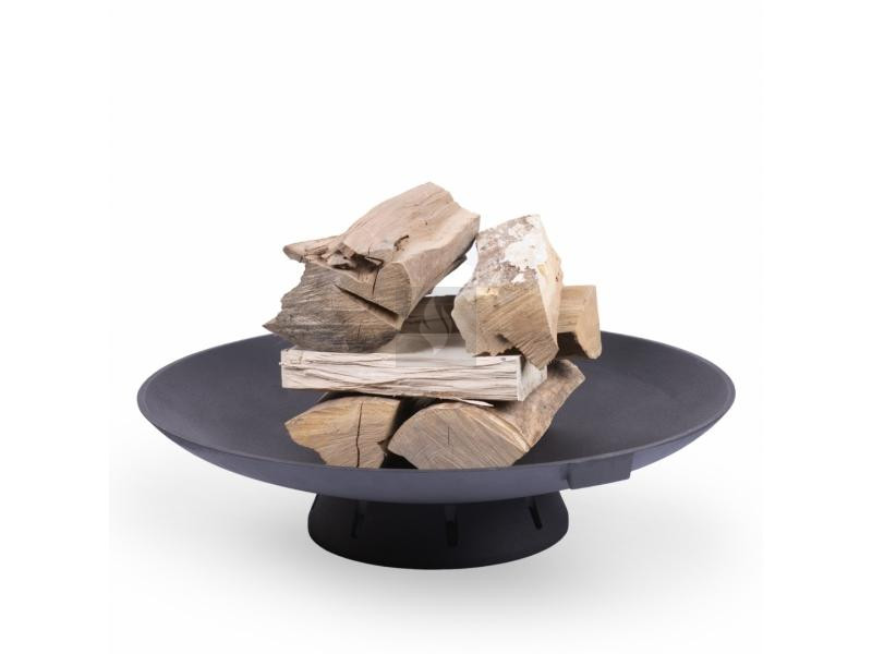 Öntöttvas tűzrakó 18 cm magassággal, 70 cm átmérővel és 22 kg tömeggel.