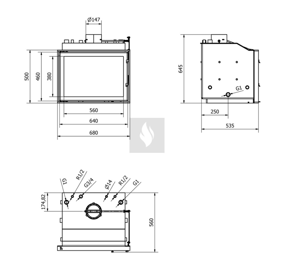 Lehetőség van szükség esetén a vízteres, vízköpenyes tűztér bélelésére, mely csökkentheti a pára, illetve kátrány kicsapódást, valamint növeli a tűztér élettartamát. Nyílt fűtési rendszerhez illeszkedő vízköpenyes kandallóbetét. További opciók: külsőlevegő csatlakozás.