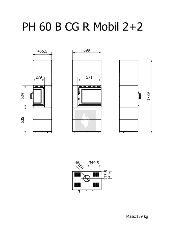 Firetechnic Pantech 60 BCG R Mobil 2+2 fehér (jobb) design kandalló