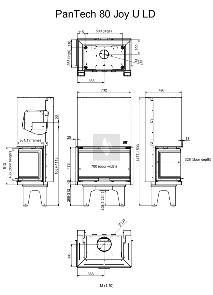Firetechnic PanTech 80 Joy U LD Légfűtéses kandallóbetét, Liftes (feltolható ajtó)val. Üvegezés típusa: Három oldali üveges. 7,0 kW névleges teljesítménnyel.