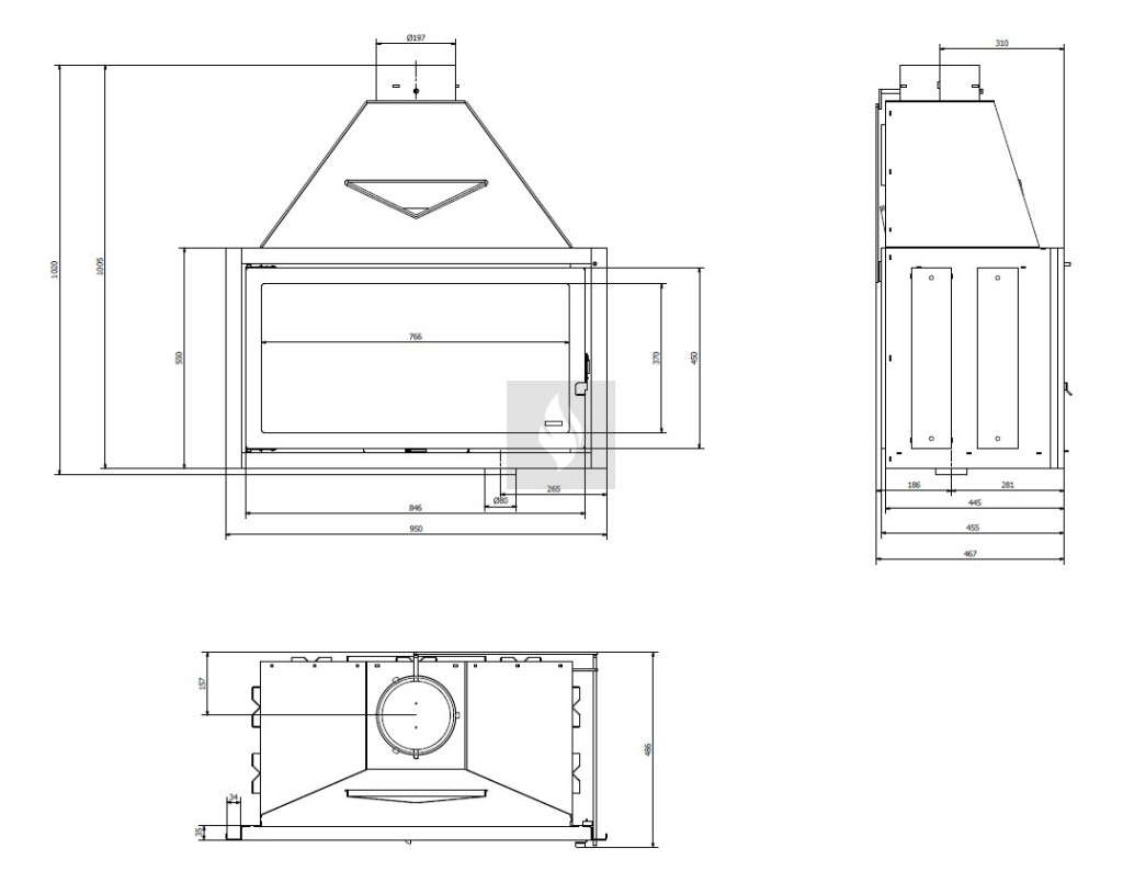 Firetechnic PanTech Classic 95 Légfűtéses kandallóbetét, Oldalra nyíló ajtóval. Üvegezés típusa: Síküveges. 15,0 kW névleges teljesítménnyel.