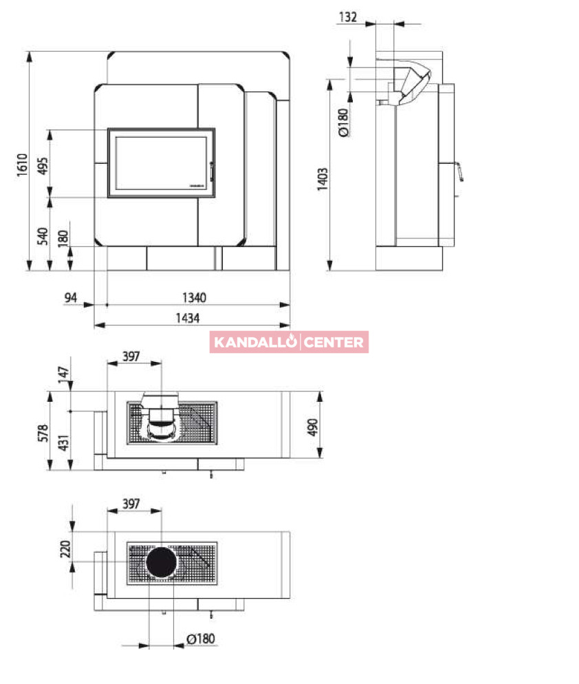 ARLBERG épített kandalló. Nem tartalmazza a bekötéshez szükséges füstcső szettet.