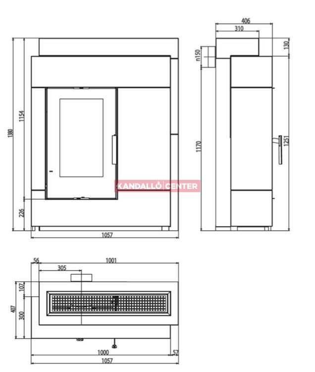 PINUS-II épített kandalló. Nem tartalmazza a bekötéshez szükséges füstcső szettet.
