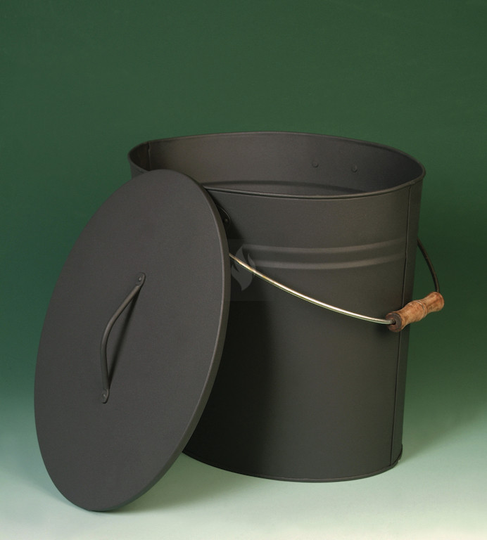 Antracit színű ovális hamutároló vödör, fogantyúval és tetővel.