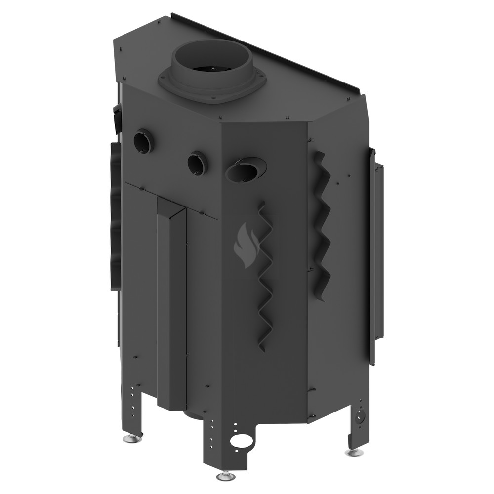 Az ø180 / 200 / 220 / 250 mm-es füstcső biztosítja a kandalló és a kéménycsatorna szoros csatlakozását, biztosítva a megfelelő égést és növelve a hőcsere területét. A hőcsövek növelik a hőcserélési és felhalmozási területet (modelltől függően 3-6 db). Az acél ajtó megnövelt merevségű profilból készült, ami garantálja az ajtó szorosságát és szilárdságát. A hőálló kerámiaüveg (DECOR üveg) akár 800°C-ig ellenáll a működési hőmérsékletnek, és opcionálisan dupla üvegezési rendszerben is elérhető.