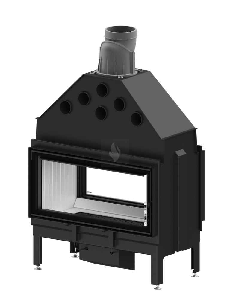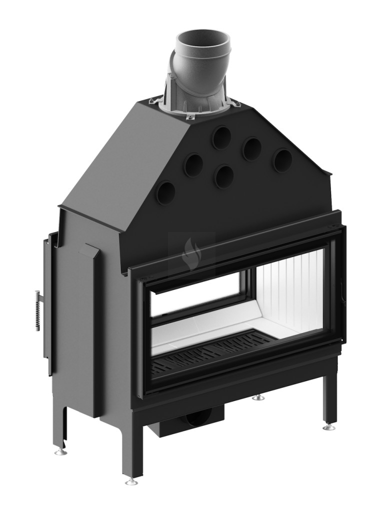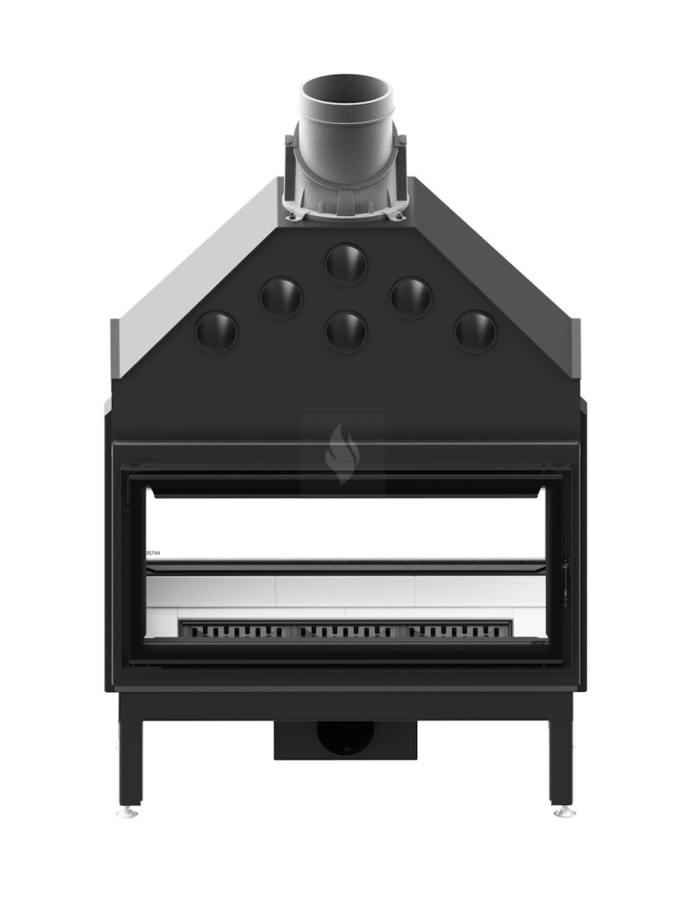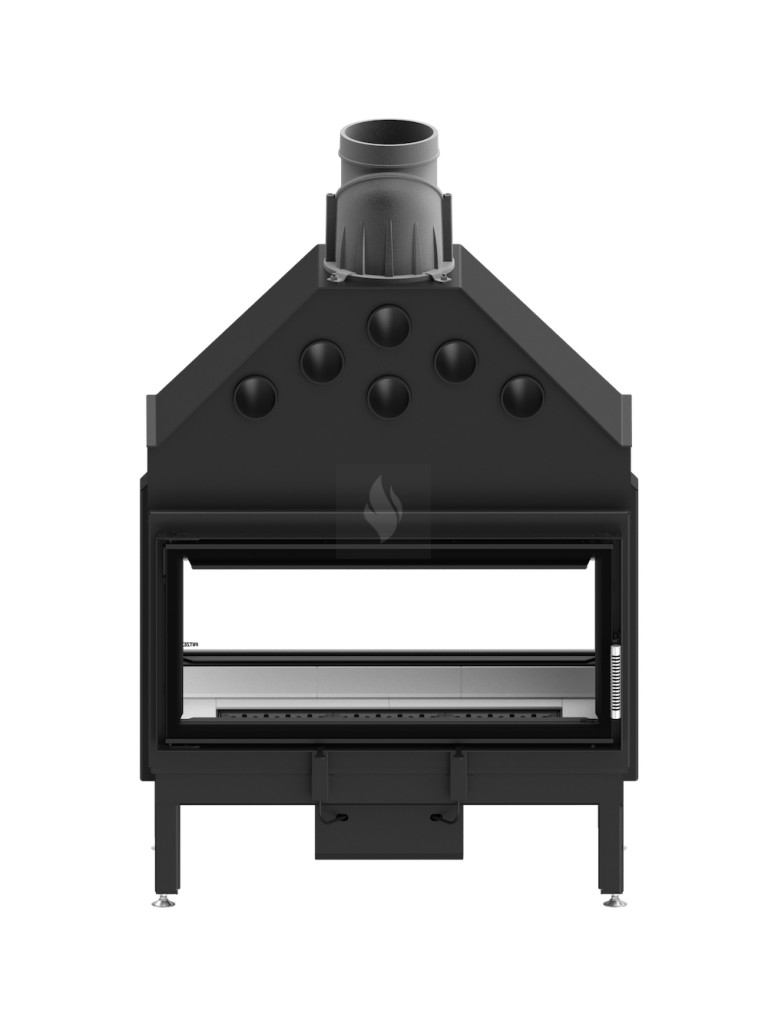 Az öntöttvas füstcső, amely ø200 mm-es és 360°-ban állítható, garantálja a kandalló és a kéménycsatorna szoros csatlakozását, biztosítva a megfelelő égést. Két kerámia deflektor hosszabb égést tesz lehetővé, meghosszabbítva a füstgáz útját és optimalizálva az égési folyamatot. A hőcserélő csövek (három darab) növelik a hőcserélési és felhalmozási területet. A masszív acél test 30%-kal nagyobb súlyú, és a fontos elemek 5 mm vastag P265GH kazánlemezből készülnek.