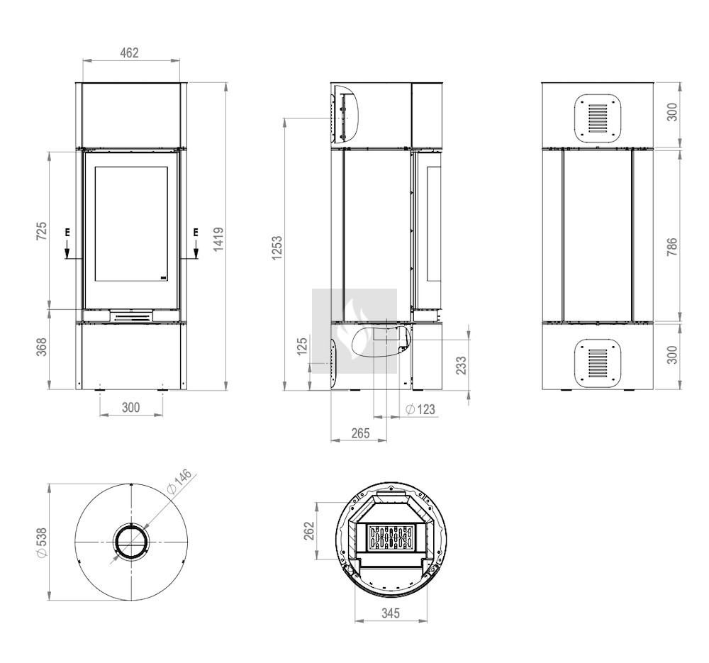 Rugalmas telepítés: Füstgáz elvezetés felülről vagy hátulról, valamint friss levegő bevezetés a hővisszanyerő rendszerekhez.