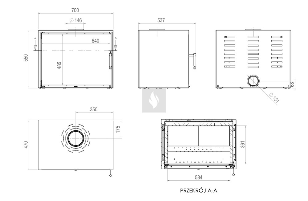 Légfűtéses kandallókályha