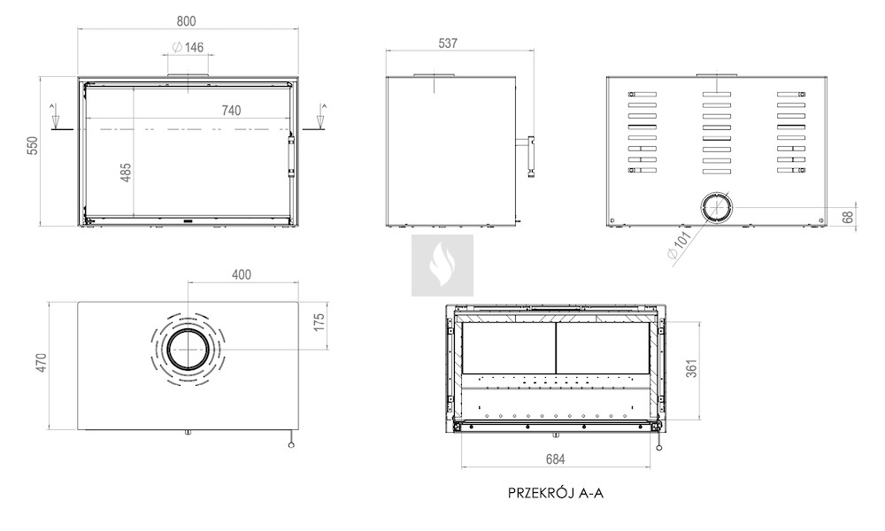 HITZE CUBO CF 800 Légfűtéses kandallókályha