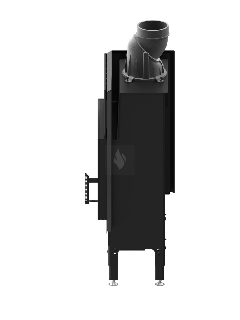 Az integrált, négy szintű fojtószelep ø125 mm-es beömlővel szabályozza az elsődleges és másodlagos levegő áramlását. A rostély nélküli égéstér kényelmes tisztítást tesz lehetővé egy hamuporszívóval. Az EASY UP állítható lábak biztonságos és stabil elhelyezést biztosítanak a kandallóbetét számára, és finoman szabályozhatók 4 cm-es tartományban, lépésenként 0-4, 5-9, 13,5 cm-ig. Az EASY START rendszer pedig független levegőszabályozással segíti a tűzgyújtást.