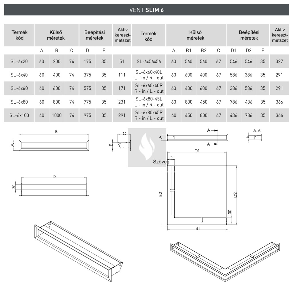 HITZE Slim 6 szellőzőrács 6x60x40 fekete