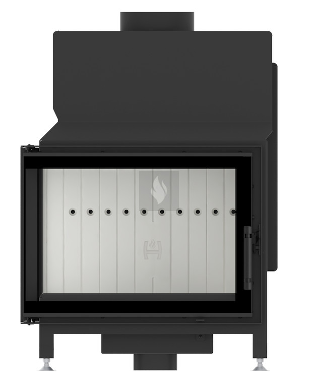 Az acél ajtó megnövelt merevségű profilból készült, ami garantálja az ajtó szilárdságát és tartósságát. Az állítható lábak lehetővé teszik a kandallóbetét biztonságos és stabil elhelyezését még instabil felületen is, és további lehetőségként a lábak +28 cm-es emelését is kínálják. Az égéstér kerámia betétje felhalmozza a hőt és akár 1000°C-ig ellenáll a hőmérsékletnek.