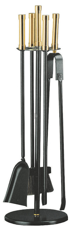 Fekete színű kandallótisztító készlet, sárgaréz nyéllel