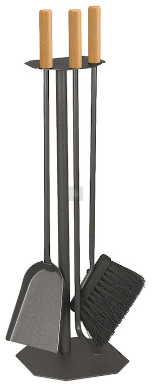 Kandallótisztító készlet, sarok nélküli antracit, bükkfa nyéllel, 3 részes