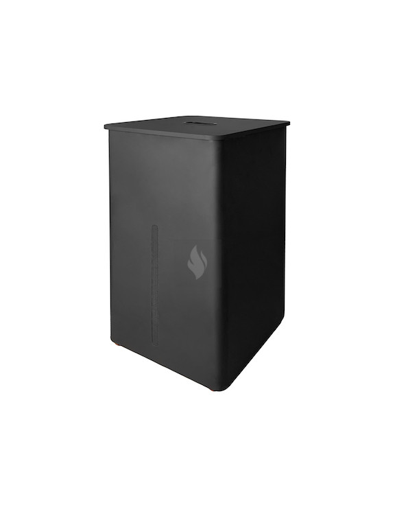 Modern megjelenésű, pellettartó láda, fekete színben, oldalán töltöttségi szintjelzővel. Tárolókapacitása: 30 kg