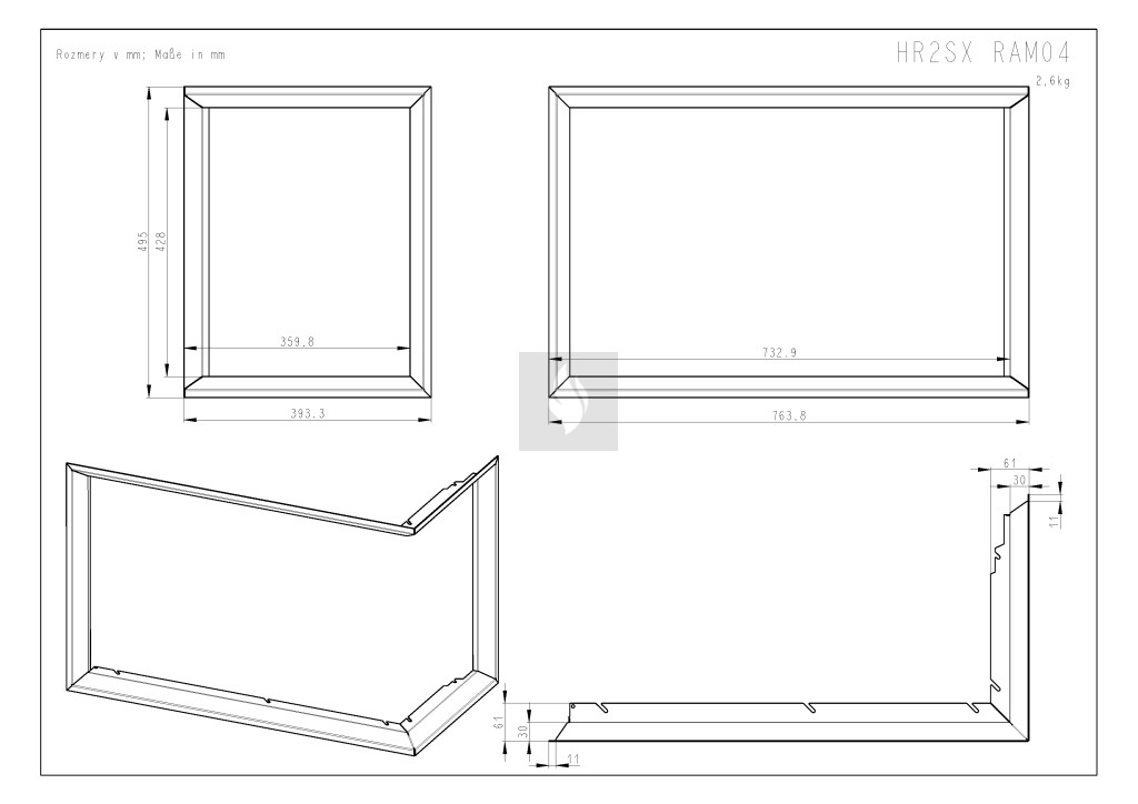 RAM04 süllyesztett beépítő keret Romotop HEAT H R/L 2SX kandallóbetéthez
