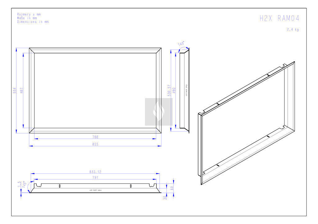 RAM04 süllyesztett beépítő keret Romotop HEAT H2X kandallóbetéthez
