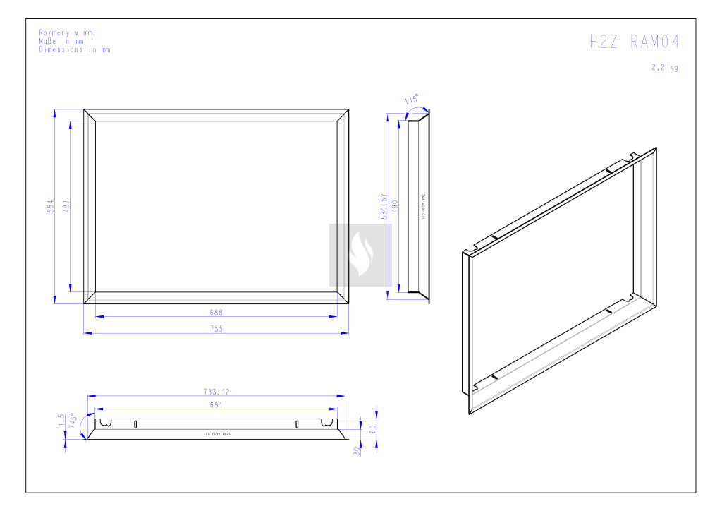 RAM04 süllyesztett beépítő keret Romotop HEAT H2Z - HW2Z kandallóbetéthez