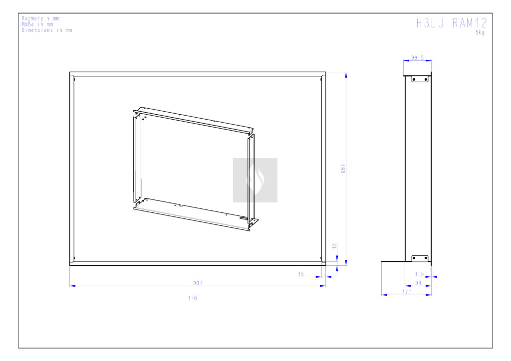 RAM12 takarókeret Romotop HEAT H3LJ kandallóbetéthez