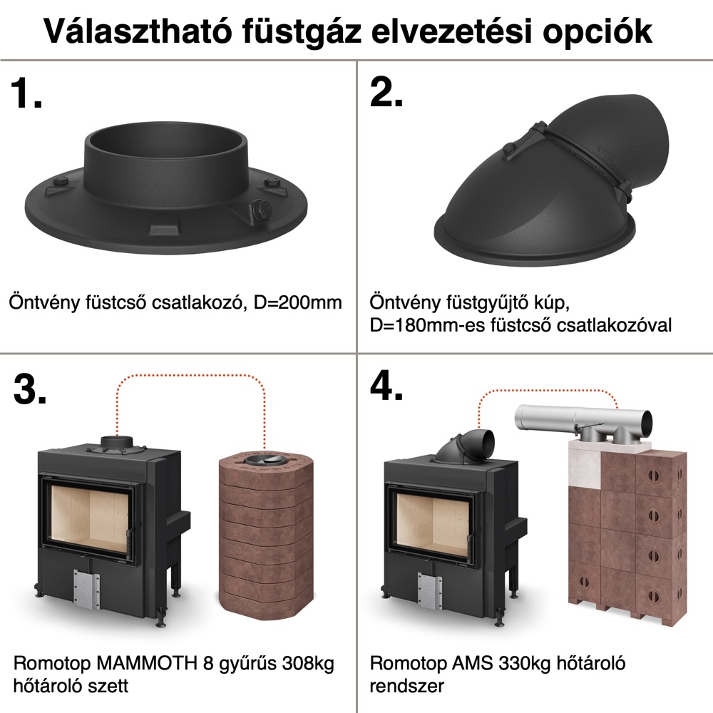• Teljes kompatibilitás: MAMMOTH hőtároló gyűrűkkel, moduláris AMS rendszerrel vagy egyedi füstgáz-vezetékekkel.