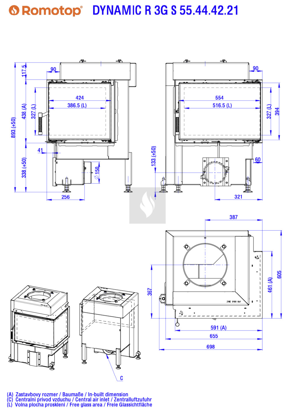 Romotop DYNAMIC R 3G S 55.44.42.21 Légfűtéses kandallóbetét