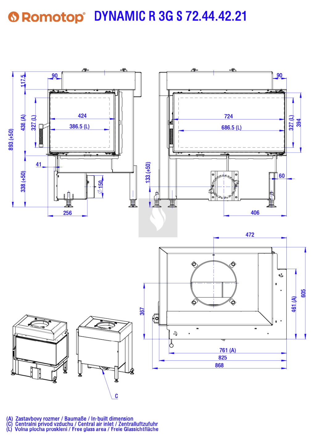 Romotop DYNAMIC R 3G S 72.44.42.21 Légfűtéses kandallóbetét