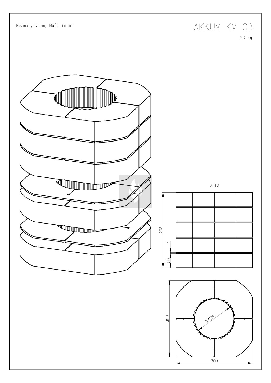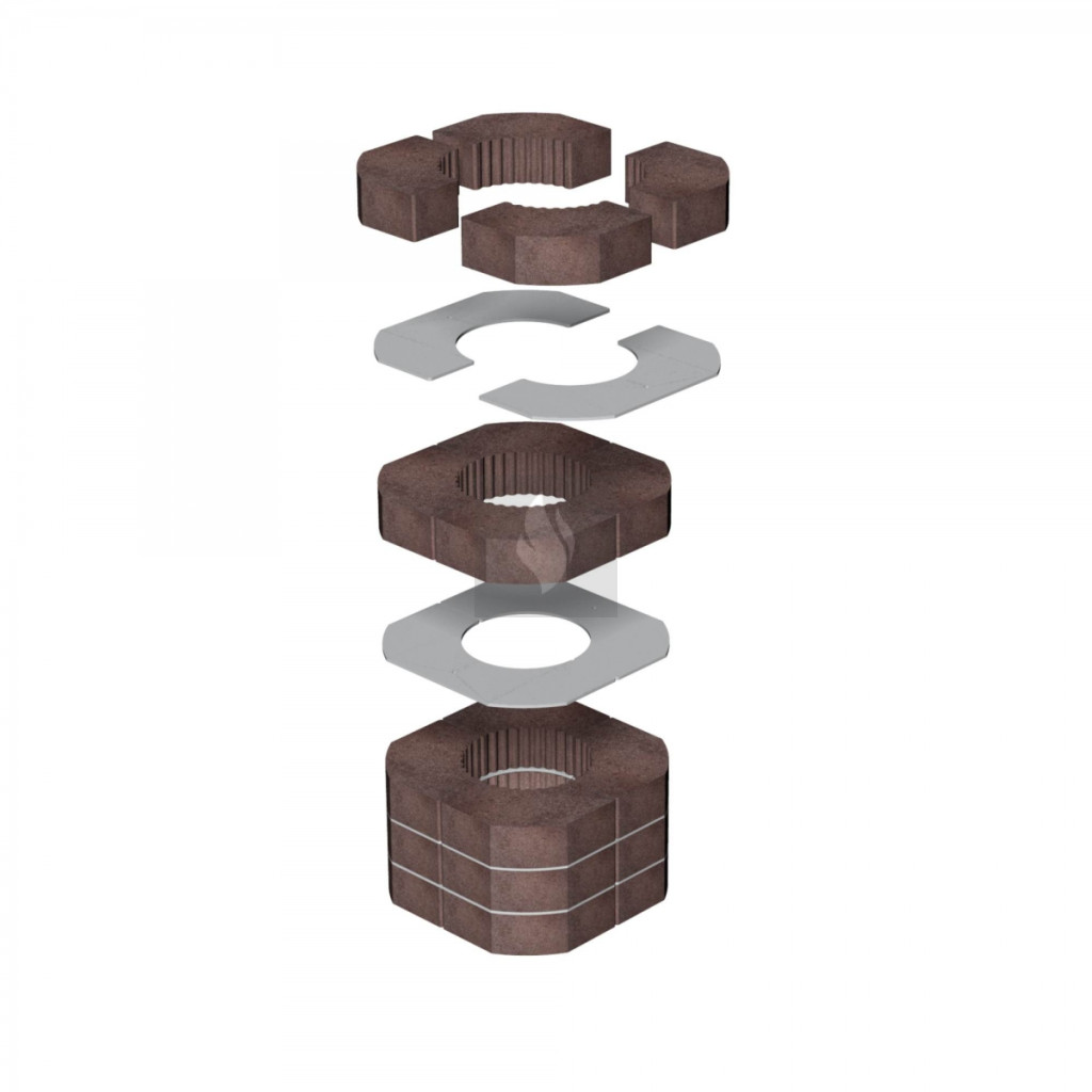 A Romotop MAMMOTH akkumulációs szett segítségével növelhető a kandallónk hőtároló képessége, a kandallóbetét használatát követően még hosszú ideig sugározza a hőt. A maximális hőátadás érdekében a hőtároló gyűrűk között fémlamellák vannak elhelyezve, ez növeli a hőtárolás sebességét. Telepítése egyszerű, a kandallóbetét felső részén a füstcső körül kell elhelyezni. 150 mm-es füstgázelvezetéssel rendelkező kandallóbetéthez használható. A hőtároló szett súlya: 70 kg.