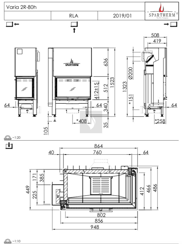 Spartherm Varia 2R-80h Légfűtéses kandallóbetét