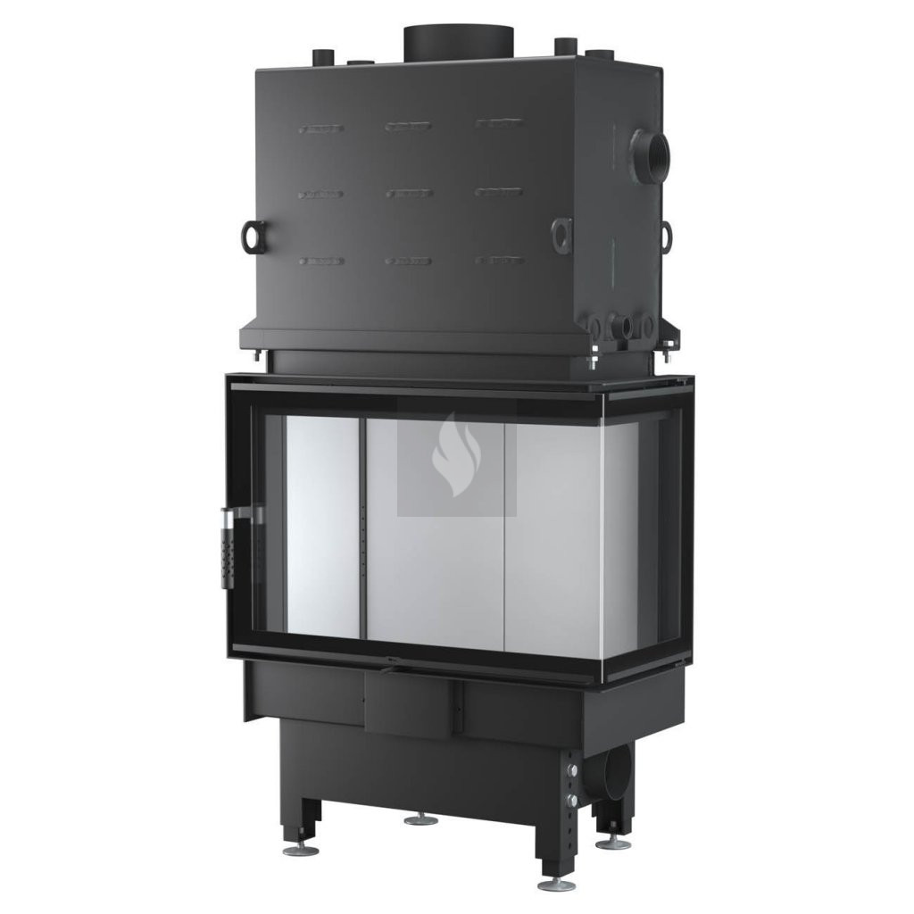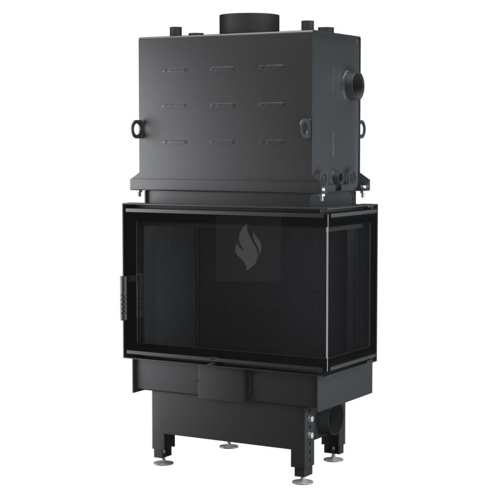 Zárt égésterű, nagyméretű, sarok-tűztérajtóval és samottbéléssel ellátott, központi fűtésre köthető vízteres  kandallóbetét (vízteres sarokkandalló).